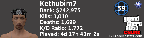 <a href="http://GTAonlinestats.com/showplayer/Kethubim7"><img src="http://GTAonlinestats.com/greysignature/Kethubim7/sig.png" alt="Kethubim7" border="0" /></a>