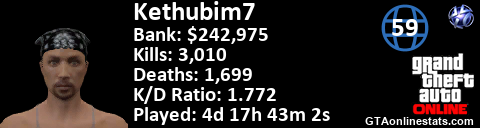 <a href="http://GTAonlinestats.com/showplayer/Kethubim7"><img src="http://GTAonlinestats.com/signature/Kethubim7/sig.png" alt="Kethubim7" border="0" /></a>