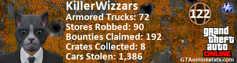 [URL=http://GTAonlinestats.com/showplayer/KillerWizzars][IMG]http://GTAonlinestats.com/randomsignature/KillerWizzars/sig.png[/IMG][/URL]