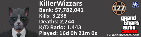 [URL=http://GTAonlinestats.com/showplayer/KillerWizzars][IMG]http://GTAonlinestats.com/dmsignature/KillerWizzars/sig.png[/IMG][/URL]