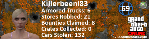 [URL=http://GTAonlinestats.com/showplayer/Killerbeenl83/2][IMG]http://GTAonlinestats.com/randomsignature/Killerbeenl83/2/sig.png[/IMG][/URL]
