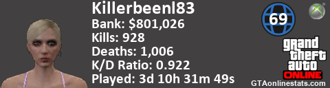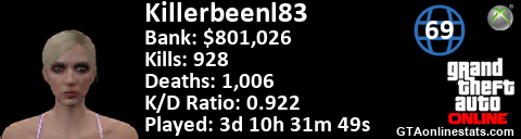 [URL=http://GTAonlinestats.com/showplayer/Killerbeenl83/2][IMG]http://GTAonlinestats.com/signature/Killerbeenl83/2/sig.png[/IMG][/URL]