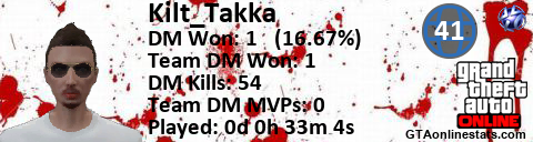 [URL=http://GTAonlinestats.com/showplayer/Kilt_Takka][IMG]http://GTAonlinestats.com/dmsignature/Kilt_Takka/sig.png[/IMG][/URL]