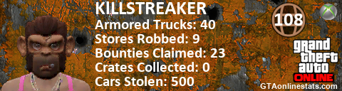 [URL=http://GTAonlinestats.com/showplayer/KlLLSTREAKER][IMG]http://GTAonlinestats.com/crimesignature/KlLLSTREAKER/sig.png[/IMG][/URL]