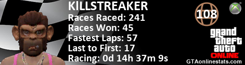 <a href="http://GTAonlinestats.com/showplayer/KlLLSTREAKER"><img src="http://GTAonlinestats.com/racesignature/KlLLSTREAKER/sig.png" alt="KlLLSTREAKER" border="0" /></a>