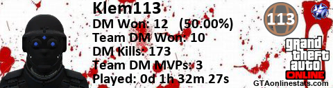 [URL=http://GTAonlinestats.com/showplayer/Klem113][IMG]http://GTAonlinestats.com/dmsignature/Klem113/sig.png[/IMG][/URL]