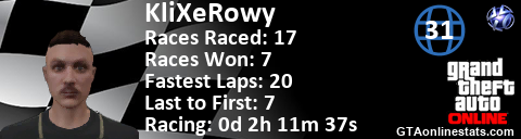 <a href="http://GTAonlinestats.com/showplayer/KliXeRowy"><img src="http://GTAonlinestats.com/racesignature/KliXeRowy/sig.png" alt="KliXeRowy" border="0" /></a>