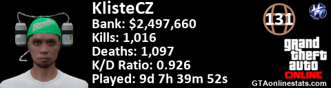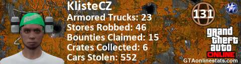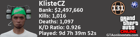[URL=http://GTAonlinestats.com/showplayer/KlisteCZ][IMG]http://GTAonlinestats.com/greysignature/KlisteCZ/sig.png[/IMG][/URL]