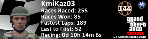 <a href="http://GTAonlinestats.com/showplayer/KmiKaz03"><img src="http://GTAonlinestats.com/racesignature/KmiKaz03/sig.png" alt="KmiKaz03" border="0" /></a>