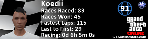 [URL=http://GTAonlinestats.com/showplayer/Koedii][IMG]http://GTAonlinestats.com/racesignature/Koedii/sig.png[/IMG][/URL]