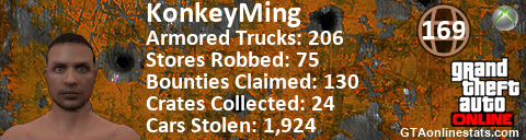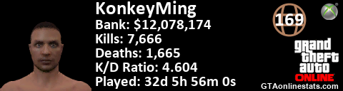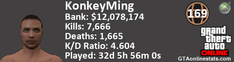 <a href="http://GTAonlinestats.com/showplayer/KonkeyMing"><img src="http://GTAonlinestats.com/signature/KonkeyMing/sig.png" alt="KonkeyMing" border="0" /></a>
