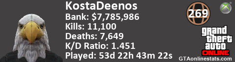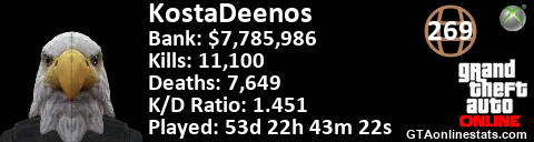 <a href="http://GTAonlinestats.com/showplayer/KostaDeenos"><img src="http://GTAonlinestats.com/signature/KostaDeenos/sig.png" alt="KostaDeenos" border="0" /></a>