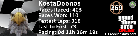 [URL=http://GTAonlinestats.com/showplayer/KostaDeenos][IMG]http://GTAonlinestats.com/racesignature/KostaDeenos/sig.png[/IMG][/URL]