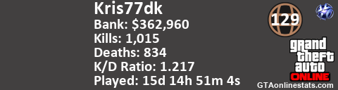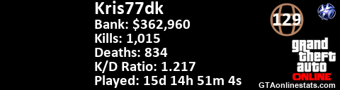 <a href="http://GTAonlinestats.com/showplayer/Kris77dk"><img src="http://GTAonlinestats.com/dmsignature/Kris77dk/sig.png" alt="Kris77dk" border="0" /></a>