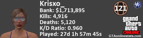 [URL=http://GTAonlinestats.com/showplayer/Krisxo_][IMG]http://GTAonlinestats.com/greysignature/Krisxo_/sig.png[/IMG][/URL]