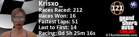 [URL=http://GTAonlinestats.com/showplayer/Krisxo_][IMG]http://GTAonlinestats.com/racesignature/Krisxo_/sig.png[/IMG][/URL]