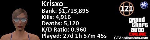 <a href="http://GTAonlinestats.com/showplayer/Krisxo_"><img src="http://GTAonlinestats.com/signature/Krisxo_/sig.png" alt="Krisxo_" border="0" /></a>