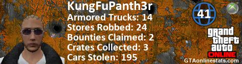 [URL=http://GTAonlinestats.com/showplayer/KungFuPanth3r][IMG]http://GTAonlinestats.com/randomsignature/KungFuPanth3r/sig.png[/IMG][/URL]