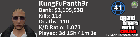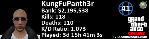 <a href="http://GTAonlinestats.com/showplayer/KungFuPanth3r"><img src="http://GTAonlinestats.com/dmsignature/KungFuPanth3r/sig.png" alt="KungFuPanth3r" border="0" /></a>