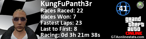 <a href="http://GTAonlinestats.com/showplayer/KungFuPanth3r"><img src="http://GTAonlinestats.com/racesignature/KungFuPanth3r/sig.png" alt="KungFuPanth3r" border="0" /></a>