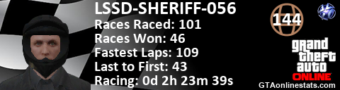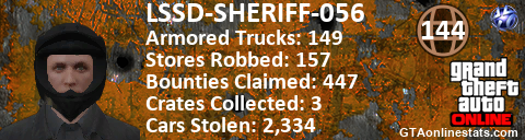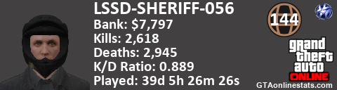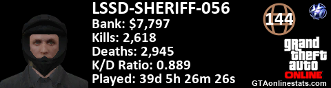 [URL=http://GTAonlinestats.com/showplayer/LSSD-SHERIFF-056][IMG]http://GTAonlinestats.com/signature/LSSD-SHERIFF-056/sig.png[/IMG][/URL]