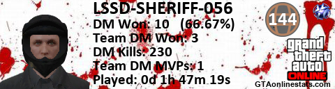 <a href="http://GTAonlinestats.com/showplayer/LSSD-SHERIFF-056"><img src="http://GTAonlinestats.com/signature/LSSD-SHERIFF-056/sig.png" alt="LSSD-SHERIFF-056" border="0" /></a>