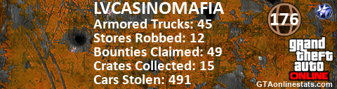 [URL=http://GTAonlinestats.com/showplayer/LVCASINOMAFIA][IMG]http://GTAonlinestats.com/crimesignature/LVCASINOMAFIA/sig.png[/IMG][/URL]
