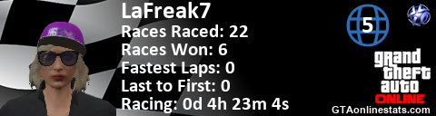 [URL=http://GTAonlinestats.com/showplayer/LaFreak7/2][IMG]http://GTAonlinestats.com/racesignature/LaFreak7/2/sig.png[/IMG][/URL]