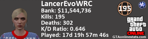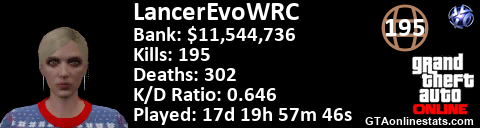 <a href="http://GTAonlinestats.com/showplayer/LancerEvoWRC/2"><img src="http://GTAonlinestats.com/signature/LancerEvoWRC/2/sig.png" alt="LancerEvoWRC" border="0" /></a>