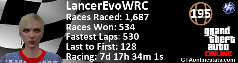 [URL=http://GTAonlinestats.com/showplayer/LancerEvoWRC/2][IMG]http://GTAonlinestats.com/racesignature/LancerEvoWRC/2/sig.png[/IMG][/URL]