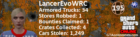 [URL=http://GTAonlinestats.com/showplayer/LancerEvoWRC/2][IMG]http://GTAonlinestats.com/signature/LancerEvoWRC/2/sig.png[/IMG][/URL]