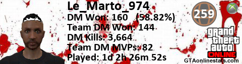 <a href="http://GTAonlinestats.com/showplayer/Le_Marto_974"><img src="http://GTAonlinestats.com/dmsignature/Le_Marto_974/sig.png" alt="Le_Marto_974" border="0" /></a>