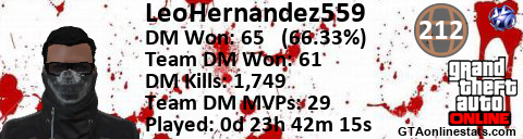 [URL=http://GTAonlinestats.com/showplayer/LeoHernandez559][IMG]http://GTAonlinestats.com/dmsignature/LeoHernandez559/sig.png[/IMG][/URL]