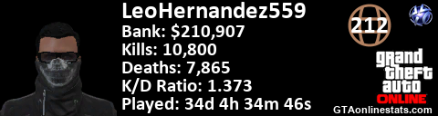 <a href="http://GTAonlinestats.com/showplayer/LeoHernandez559"><img src="http://GTAonlinestats.com/signature/LeoHernandez559/sig.png" alt="LeoHernandez559" border="0" /></a>