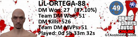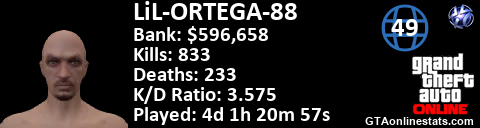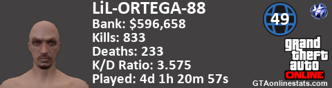 <a href="http://GTAonlinestats.com/showplayer/LiL-ORTEGA-88"><img src="http://GTAonlinestats.com/randomsignature/LiL-ORTEGA-88/sig.png" alt="LiL-ORTEGA-88" border="0" /></a>