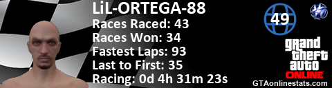 <a href="http://GTAonlinestats.com/showplayer/LiL-ORTEGA-88"><img src="http://GTAonlinestats.com/racesignature/LiL-ORTEGA-88/sig.png" alt="LiL-ORTEGA-88" border="0" /></a>