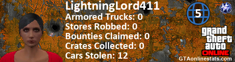 [URL=http://GTAonlinestats.com/showplayer/LightningLord411/3][IMG]http://GTAonlinestats.com/crimesignature/LightningLord411/3/sig.png[/IMG][/URL]