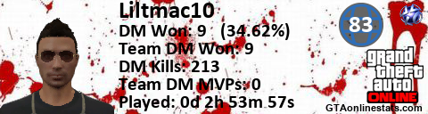 [URL=http://GTAonlinestats.com/showplayer/Liltmac10][IMG]http://GTAonlinestats.com/greysignature/Liltmac10/sig.png[/IMG][/URL]
