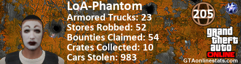 <a href="http://GTAonlinestats.com/showplayer/LoA-Phantom"><img src="http://GTAonlinestats.com/randomsignature/LoA-Phantom/sig.png" alt="LoA-Phantom" border="0" /></a>