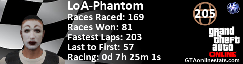 <a href="http://GTAonlinestats.com/showplayer/LoA-Phantom"><img src="http://GTAonlinestats.com/racesignature/LoA-Phantom/sig.png" alt="LoA-Phantom" border="0" /></a>