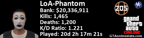 <a href="http://GTAonlinestats.com/showplayer/LoA-Phantom"><img src="http://GTAonlinestats.com/signature/LoA-Phantom/sig.png" alt="LoA-Phantom" border="0" /></a>