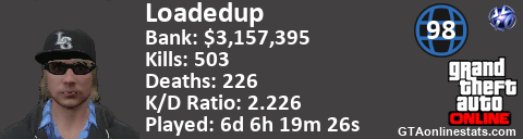 <a href="http://GTAonlinestats.com/showplayer/Loadedup/2"><img src="http://GTAonlinestats.com/signature/Loadedup/2/sig.png" alt="Loadedup" border="0" /></a>