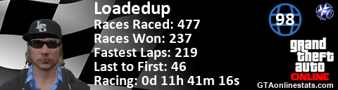 [URL=http://GTAonlinestats.com/showplayer/Loadedup/2][IMG]http://GTAonlinestats.com/racesignature/Loadedup/2/sig.png[/IMG][/URL]