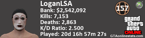 [URL=http://GTAonlinestats.com/showplayer/LoganLSA][IMG]http://GTAonlinestats.com/randomsignature/LoganLSA/sig.png[/IMG][/URL]