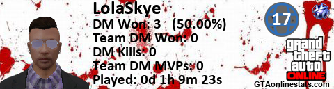 [URL=http://GTAonlinestats.com/showplayer/LolaSkye/2][IMG]http://GTAonlinestats.com/dmsignature/LolaSkye/2/sig.png[/IMG][/URL]