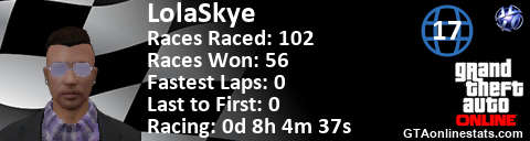 [URL=http://GTAonlinestats.com/showplayer/LolaSkye/2][IMG]http://GTAonlinestats.com/racesignature/LolaSkye/2/sig.png[/IMG][/URL]