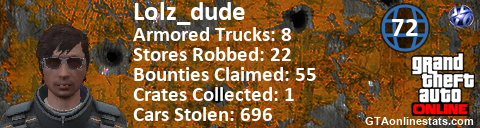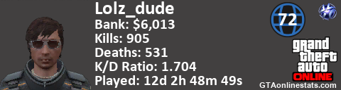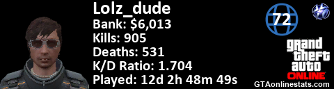 [URL=http://GTAonlinestats.com/showplayer/Lolz_dude][IMG]http://GTAonlinestats.com/dmsignature/Lolz_dude/sig.png[/IMG][/URL]