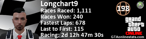 <a href="http://GTAonlinestats.com/showplayer/Longchart9"><img src="http://GTAonlinestats.com/racesignature/Longchart9/sig.png" alt="LongChart9" border="0" /></a>