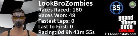 <a href="http://GTAonlinestats.com/showplayer/LookBroZombies"><img src="http://GTAonlinestats.com/racesignature/LookBroZombies/sig.png" alt="LookBroZombies" border="0" /></a>