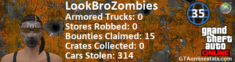 [URL=http://GTAonlinestats.com/showplayer/LookBroZombies][IMG]http://GTAonlinestats.com/crimesignature/LookBroZombies/sig.png[/IMG][/URL]